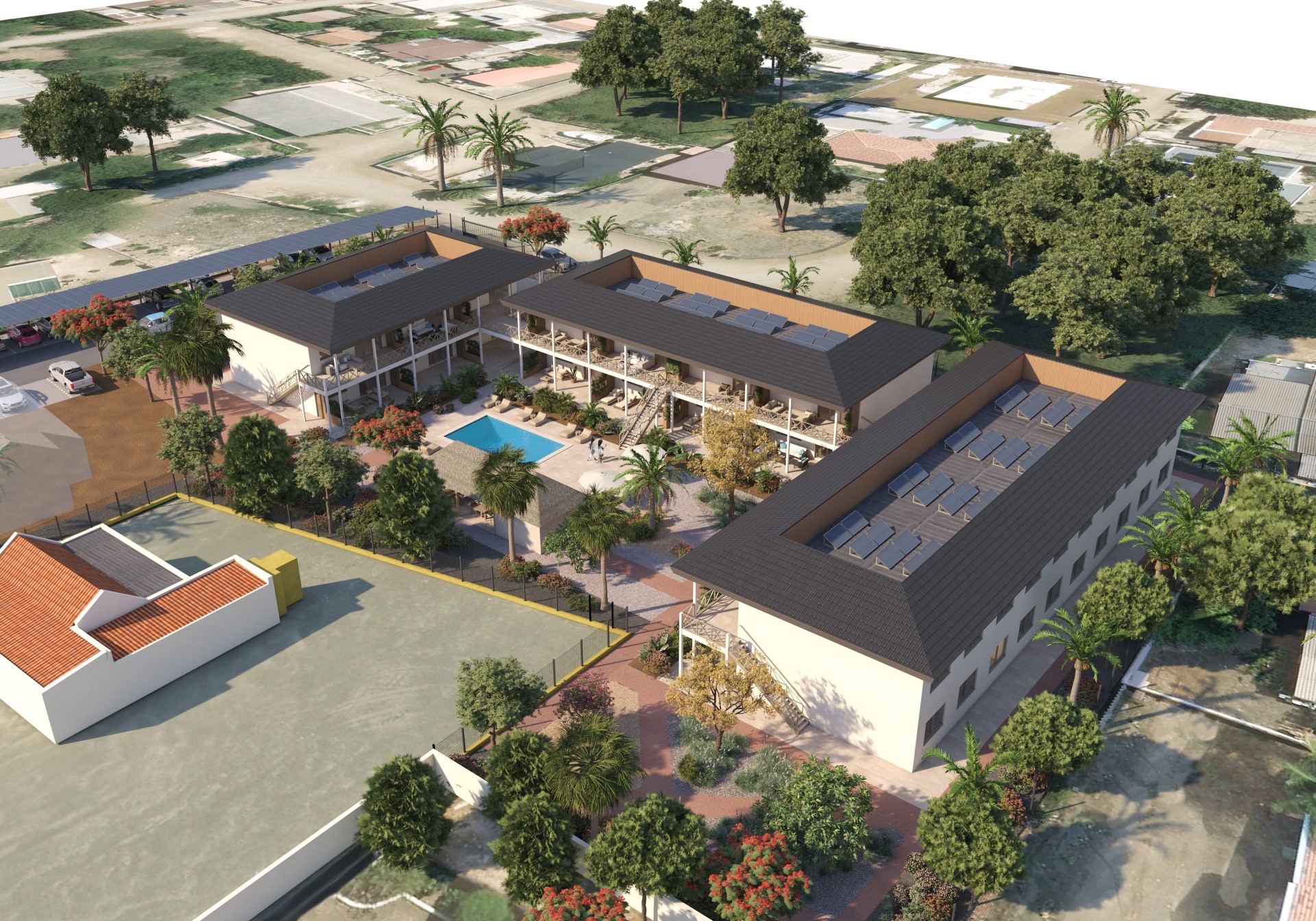 In het nieuwbouwproject Kurason Nikiboko Apartments worden moderne, duurzame appartementen aangeboden met een woonoppervlakte van circa 117,3 m² inclusief buitenruimte. Dit kleinschalige project bestaat uit 24 appartementen, verdeeld over drie zorgvuldig ontworpen gebouwen.