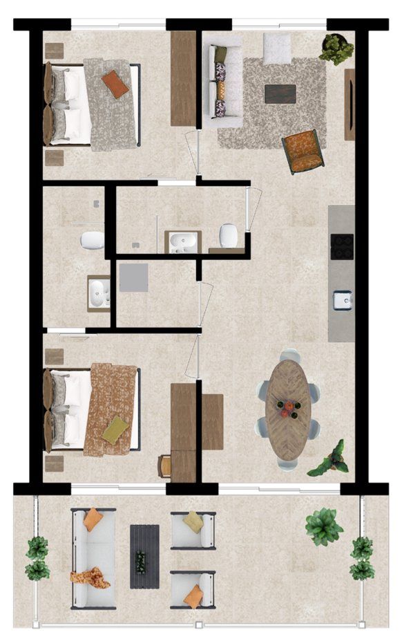 Elk appartement is uitgerust met een video-intercominstallatie en wordt turn-key opgeleverd. Kopers kunnen bovendien kiezen uit twee verschillende indelingsvarianten, zodat de woning volledig aansluit bij persoonlijke woonwensen.