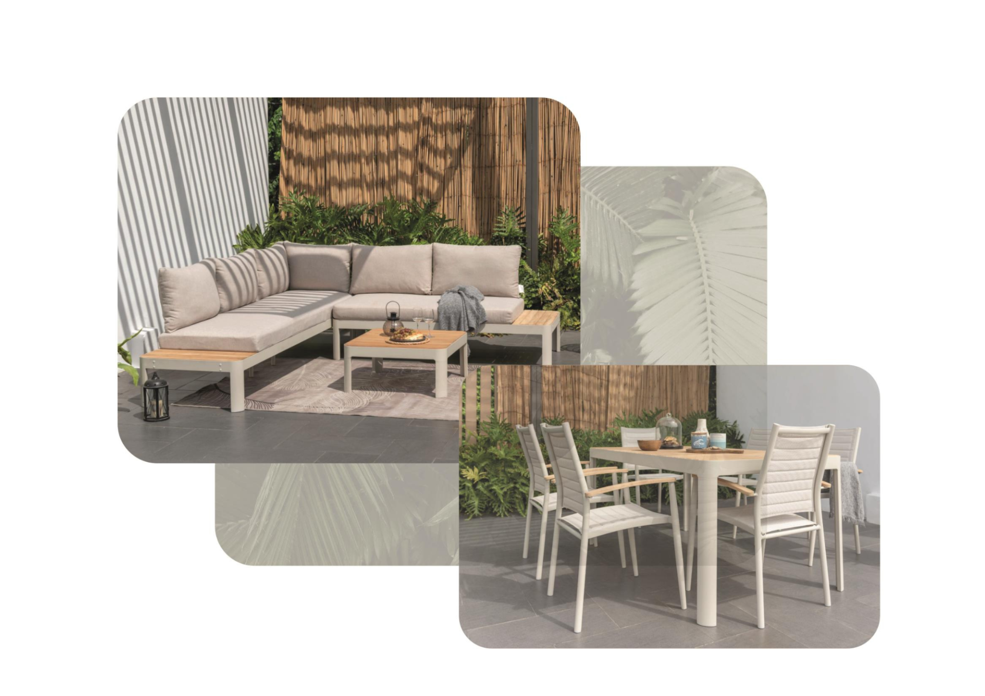 Each unit includes a spacious living area, open kitchen, bedroom(s), bathroom, and a private terrace — all wrapped in elegant island architecture.