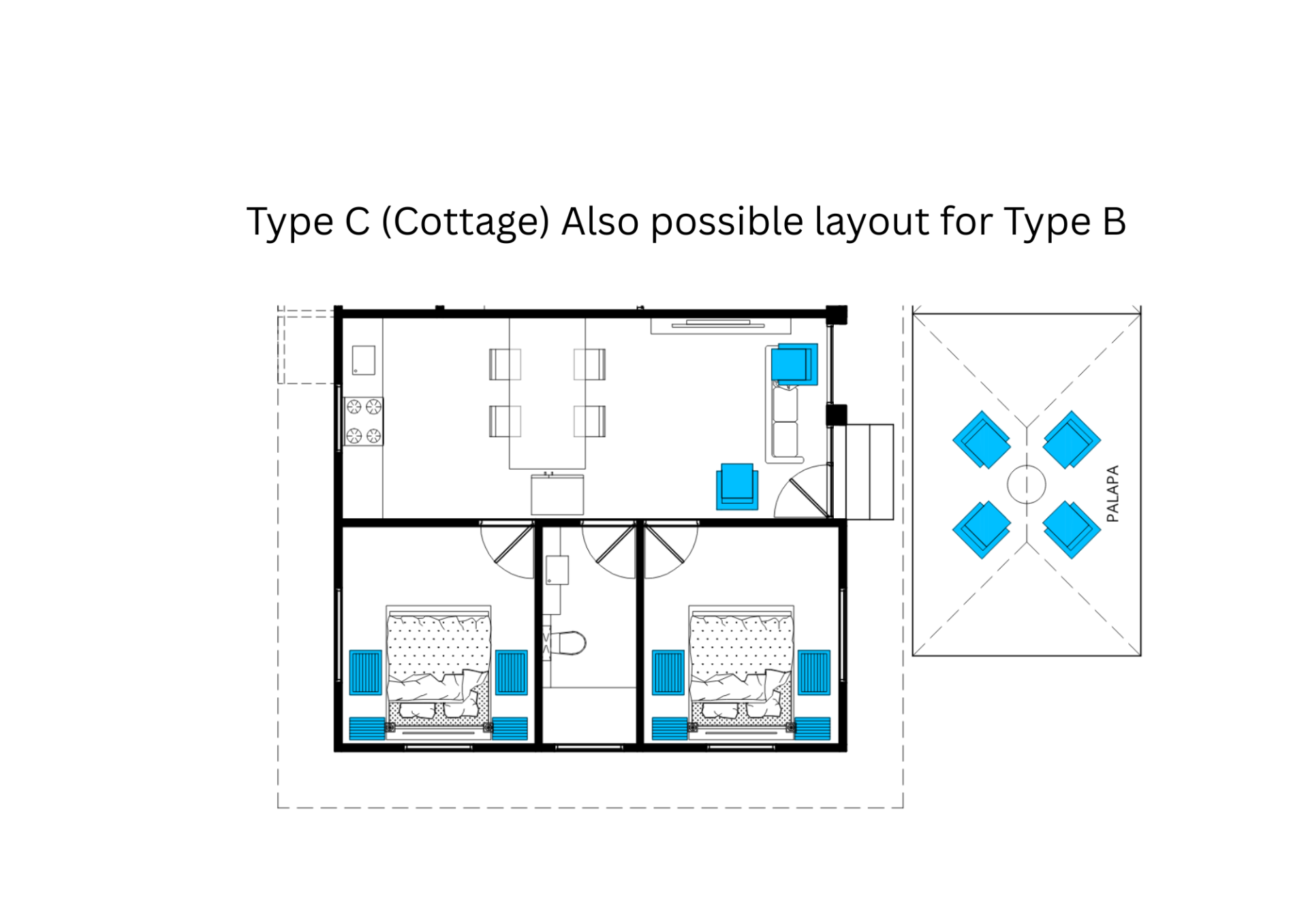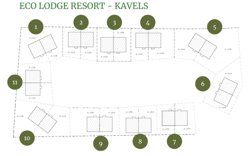 Choose which home type (A, or B) you wish to have built on your own private lot. Type C Cottages are built on half a lot and will be divided into Apartment Rights.