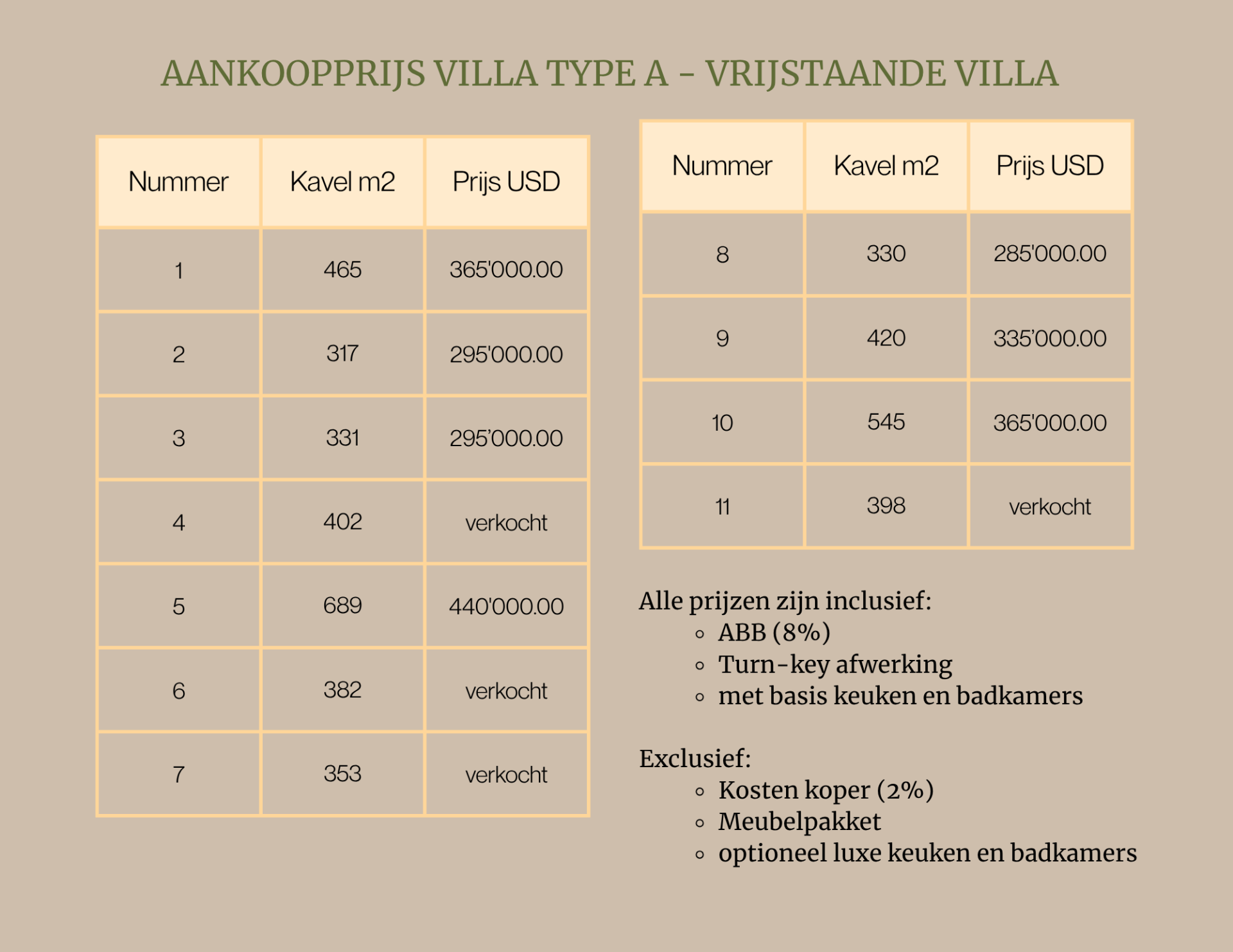 Villas Type A - Detached Villa (Vijstaande Villa) - 111m2, lot sizes 317m2 - 545m2 (Property Land)