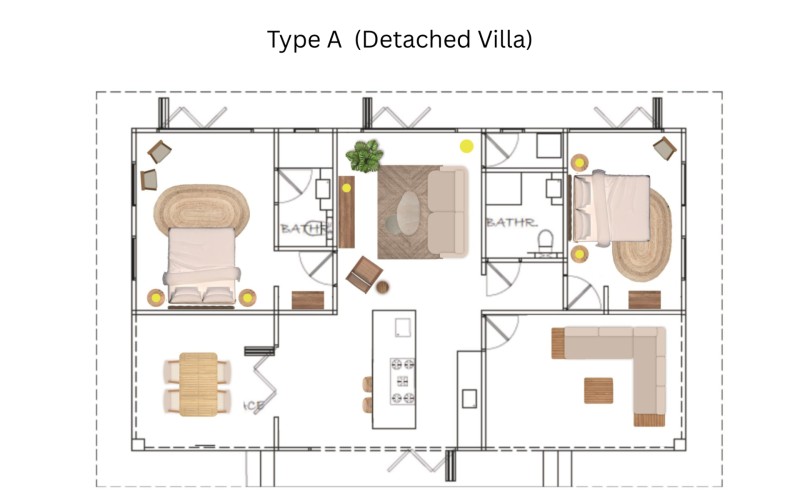 The project offers four home types – from spacious villas to compact studios – all designed with respect for nature, comfort, and long-term value.