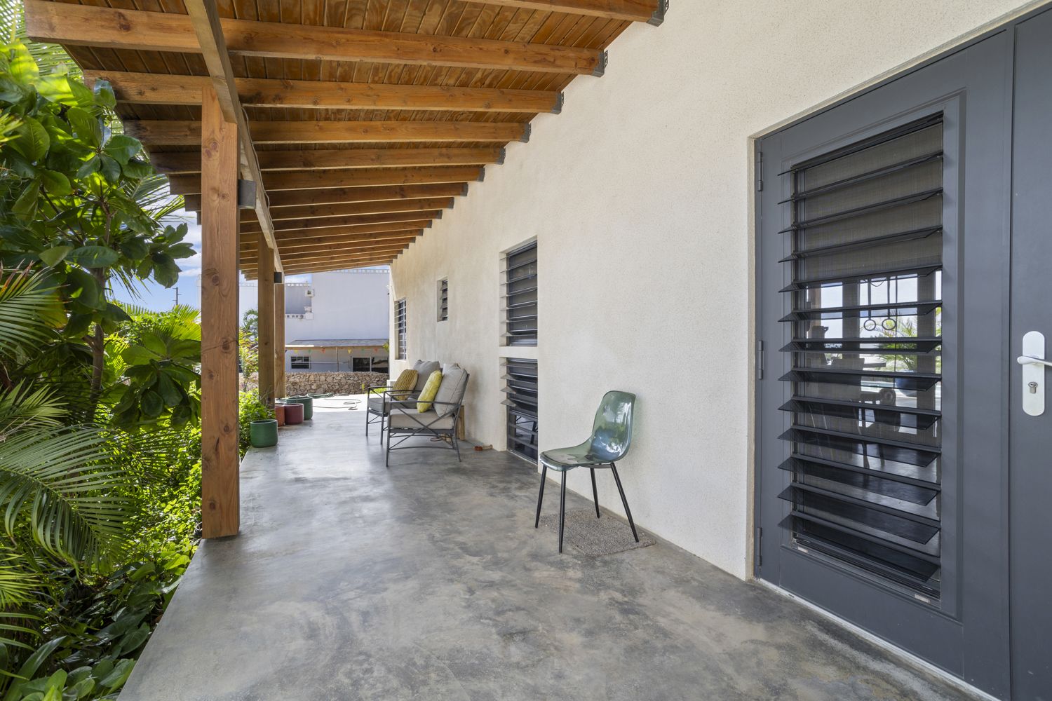 A lush tropical garden filled with mature plants creates privacy and a true Caribbean atmosphere. The property also offers very ample parking space for multiple vehicles, a valuable asset on Bonaire.