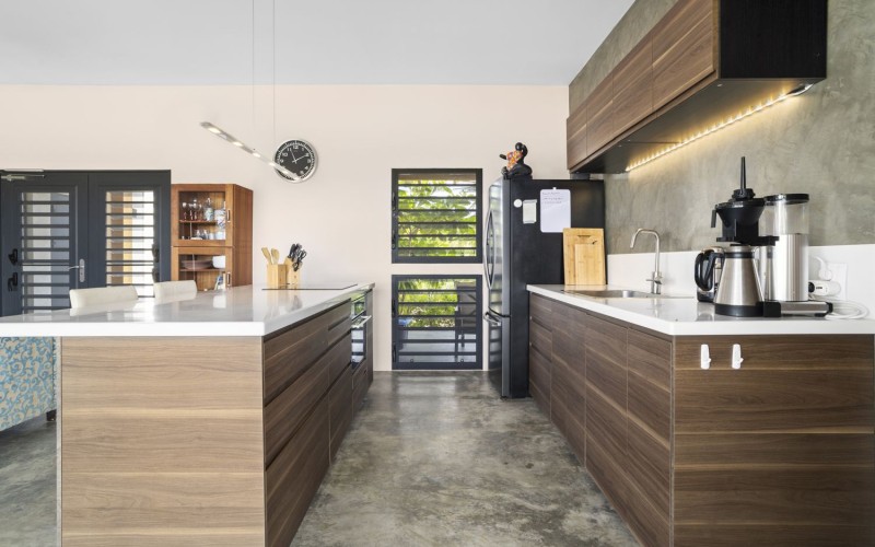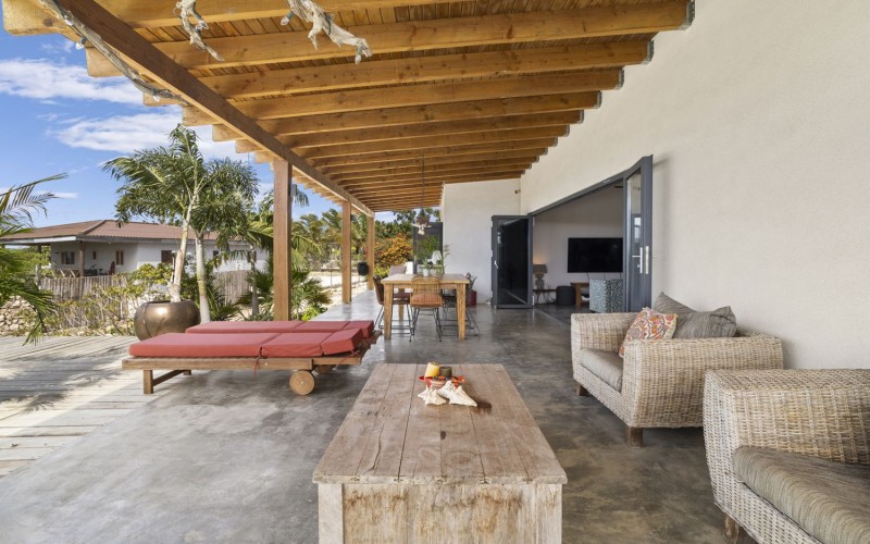 The home operates off-grid with a robust solar energy system, while remaining connected to WEB (Water- en Energiebedrijf Bonaire) for complete backup and peace of mind.