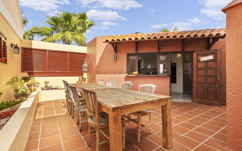Het zoutwater zwembad ligt centraal op de verdieping waar u binnenkomt. Er is een sfeervolle hoek gecreëerd bij de keuken waar een grote tafel staat en, zeker niet geheel onbelangrijk, een BBQ gemetseld is.