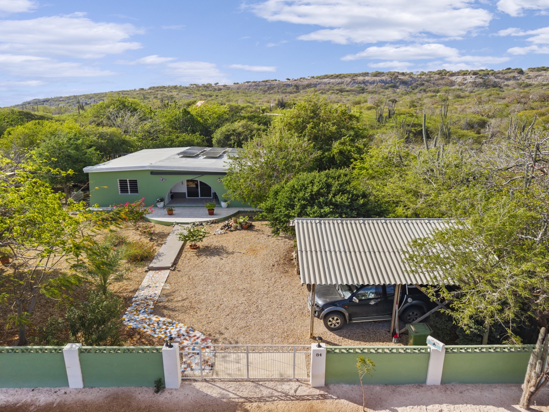 Het perceel biedt veel privacy, een onderhoudsvriendelijke tuin en een overdekte carport. De ligging combineert rust, natuur en een goede bereikbaarheid van Kralendijk en overige voorzieningen.